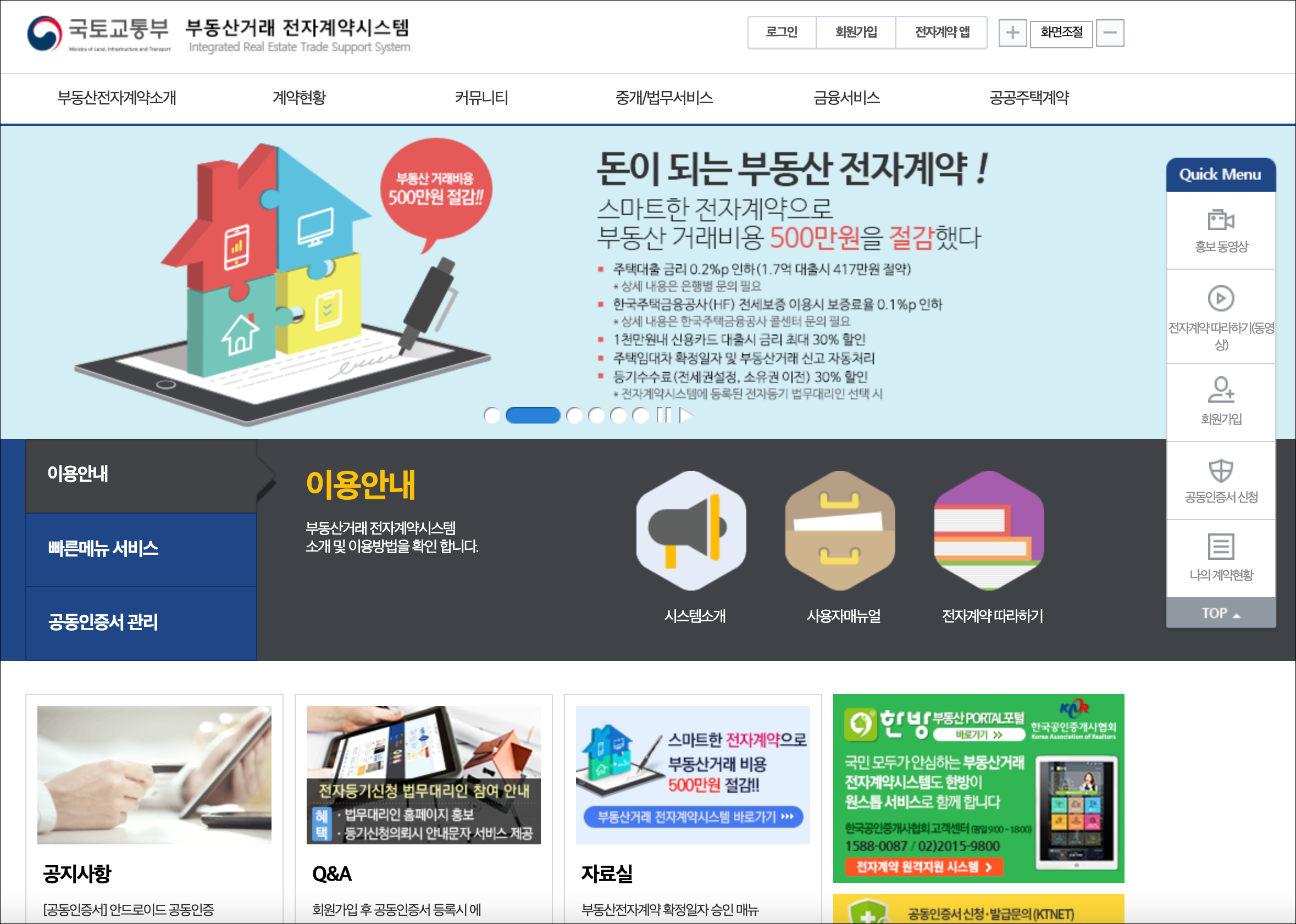 궁금궁금 국토부 부동산거래 전자계약시스템 주소는? 곰돌이푸아빠 2022. 3. 14. 06:43 국토교통부 부동산거래 전자계약시스템 부동산 전자계약 작성 및 안내, 전자계약 현황 조회, 공동인증서 관리, 전자계약 중개사무소 안내, 이용안내 irts.molit.go.kr 공유하기 게시글 관리 푸른하늘아래 짙은구름 저작자표시 (새창열림) The greatest glory in living lies not in never falling, but in rising every time we fall. – Nelson Mandela '궁금궁금' Related Articles 광주에서 여수까지 걸리는 시간은? 왼쪽 옆구리 통증 어느병원으로 가야할까요? 1961년생 국민연금 납입기간은? 국토교통부 전자계약시스템 홈페이지는?
