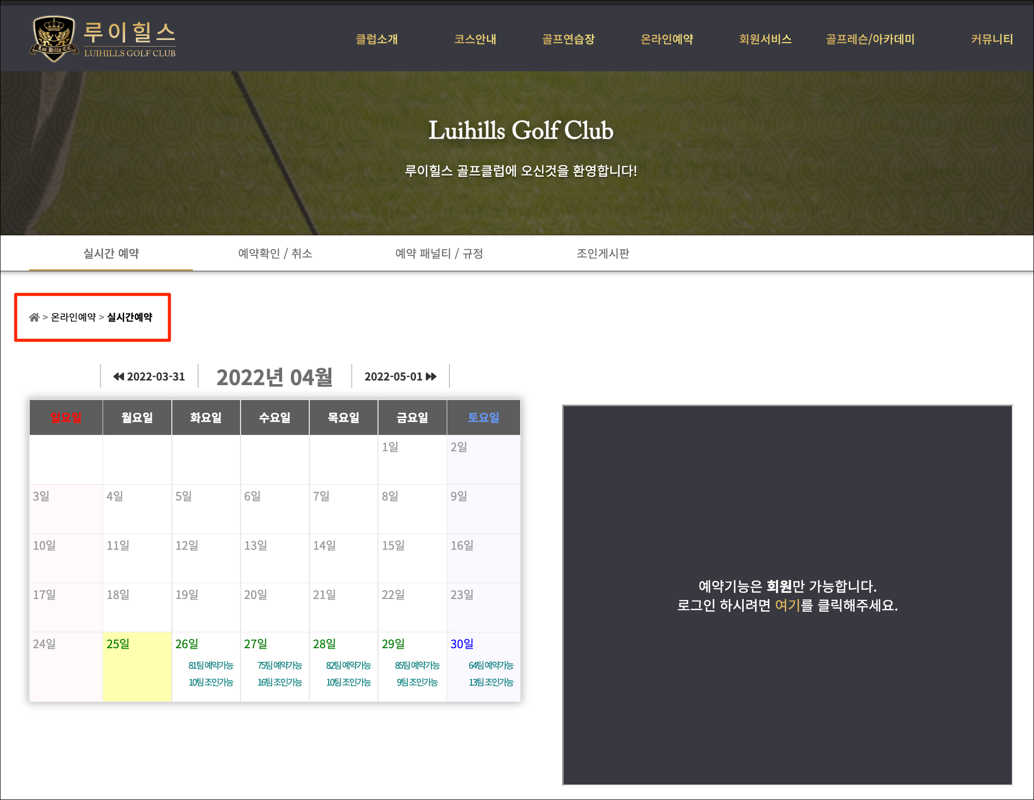 궁금궁금 루이힐스 파3골프장 예약하는 방법은? 곰돌이푸아빠 2022. 4. 25. 06:35 예약관리 1 페이지 | 루이힐스골프클럽 예약 가능 일자를 선택해주세요.(달력에서 클릭) luihills.com 회원가입을 하신후 위 사이트에서 실시간 예약을 할 수 있어요. 공유하기 게시글 관리 푸른하늘아래 짙은구름 저작자표시 (새창열림) The greatest glory in living lies not in never falling, but in rising every time we fall. – Nelson Mandela '궁금궁금' Related Articles 건축물 관리법 기술자 교육 시스템은? 뭐 눈에는 뭐만 보인다는 사자성어는? 만도 블랙박스 전용뷰어 프로그램 내려받는 사이트는? 서울역에서 경주 ktx 열차시간표는?