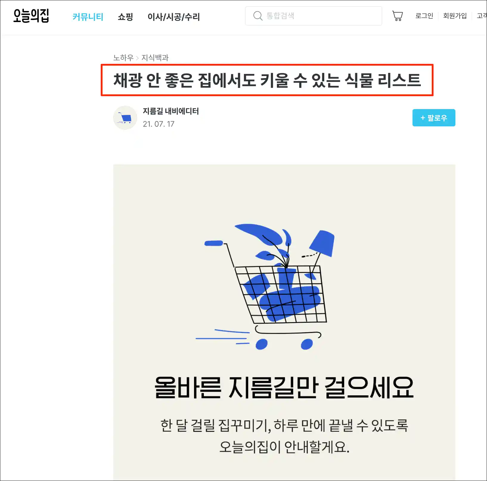채광 안 좋은 집에서도 키울 수 있는 식물 리스트 | 예쁜템들 모여사는 오늘의집 인테리어 집꾸