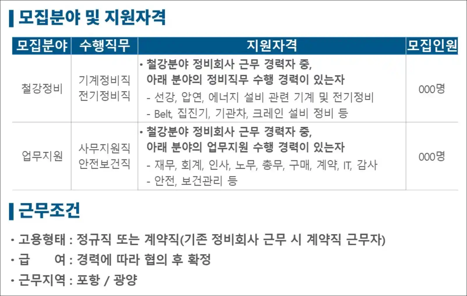 채용공고 및 지원 | 포스코 정비자회사 경력사원 채용 | 포스코 정비자회사 인재채용위원회