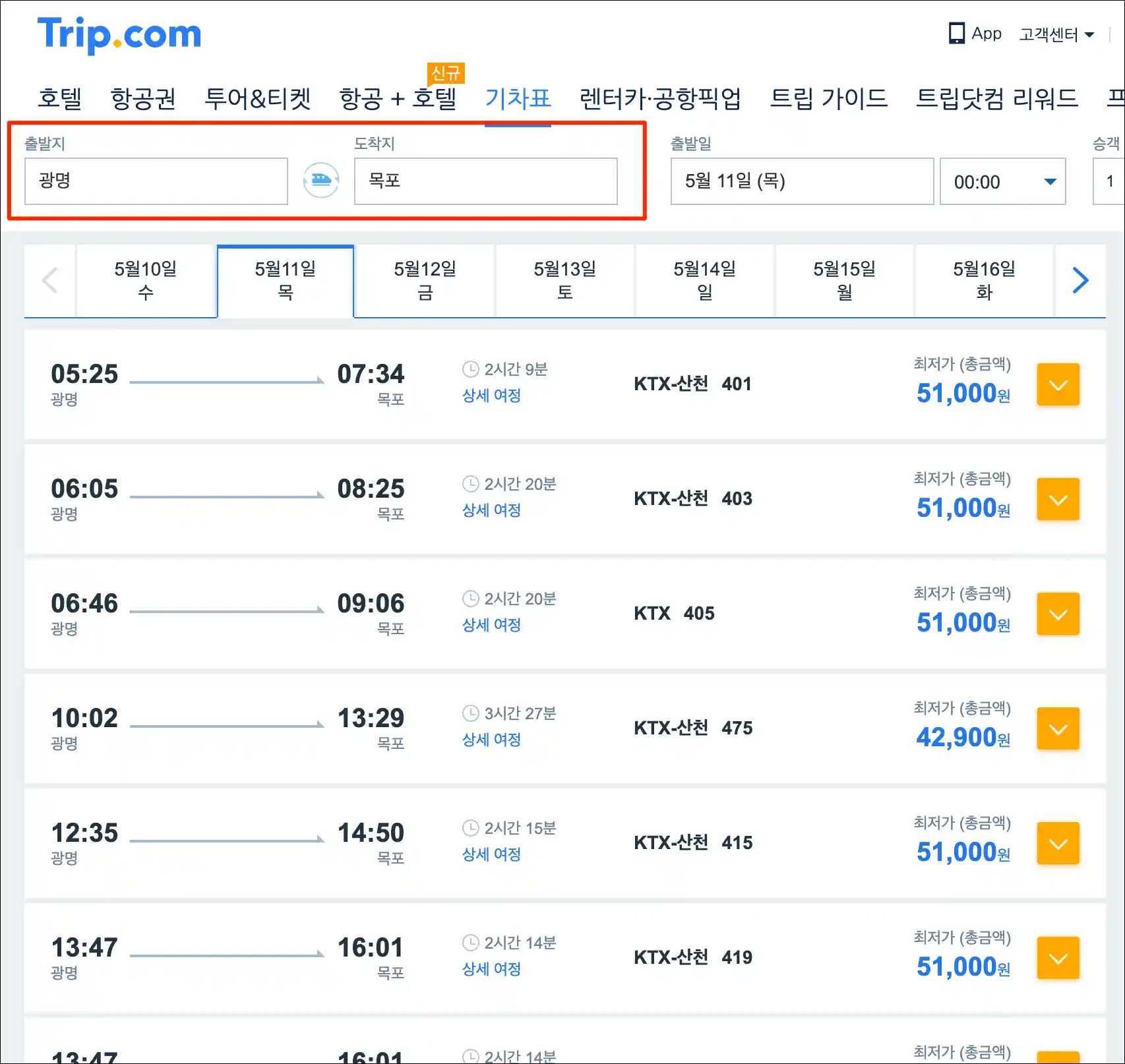 트립닷컴에서 광명역에서 목포행 KTX의 시간표를 확인해보세요.