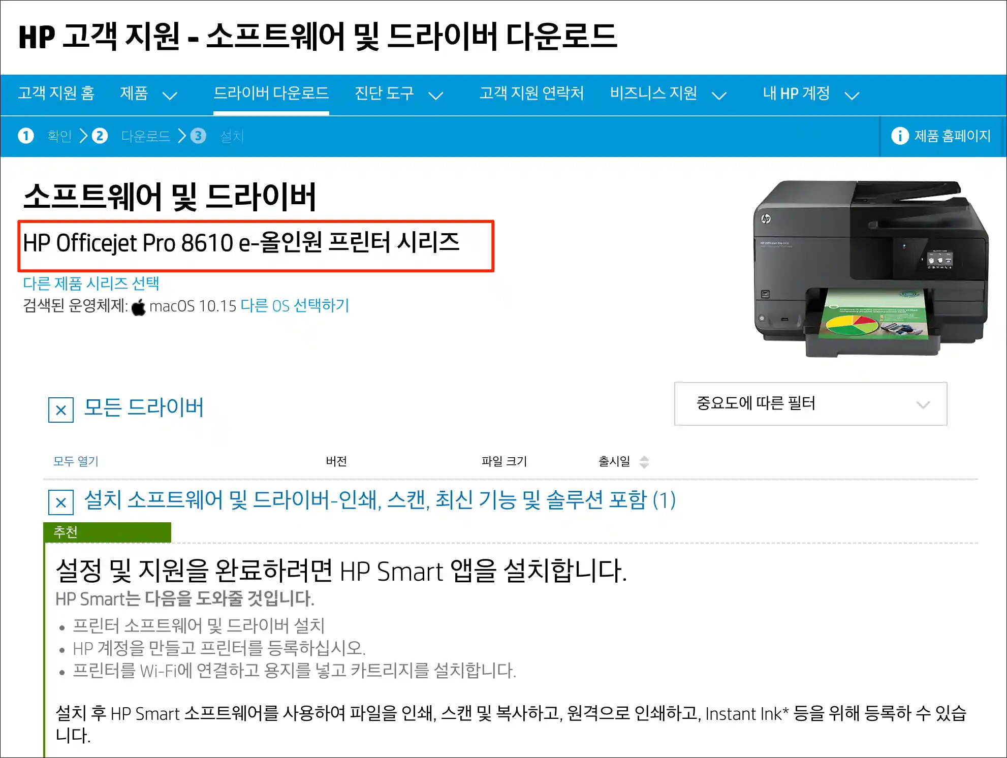 HP Officejet Pro 8610 e-올인원 프린터 시리즈 소프트웨어 및 드라이버 다운로드 | HP® 고객 지원