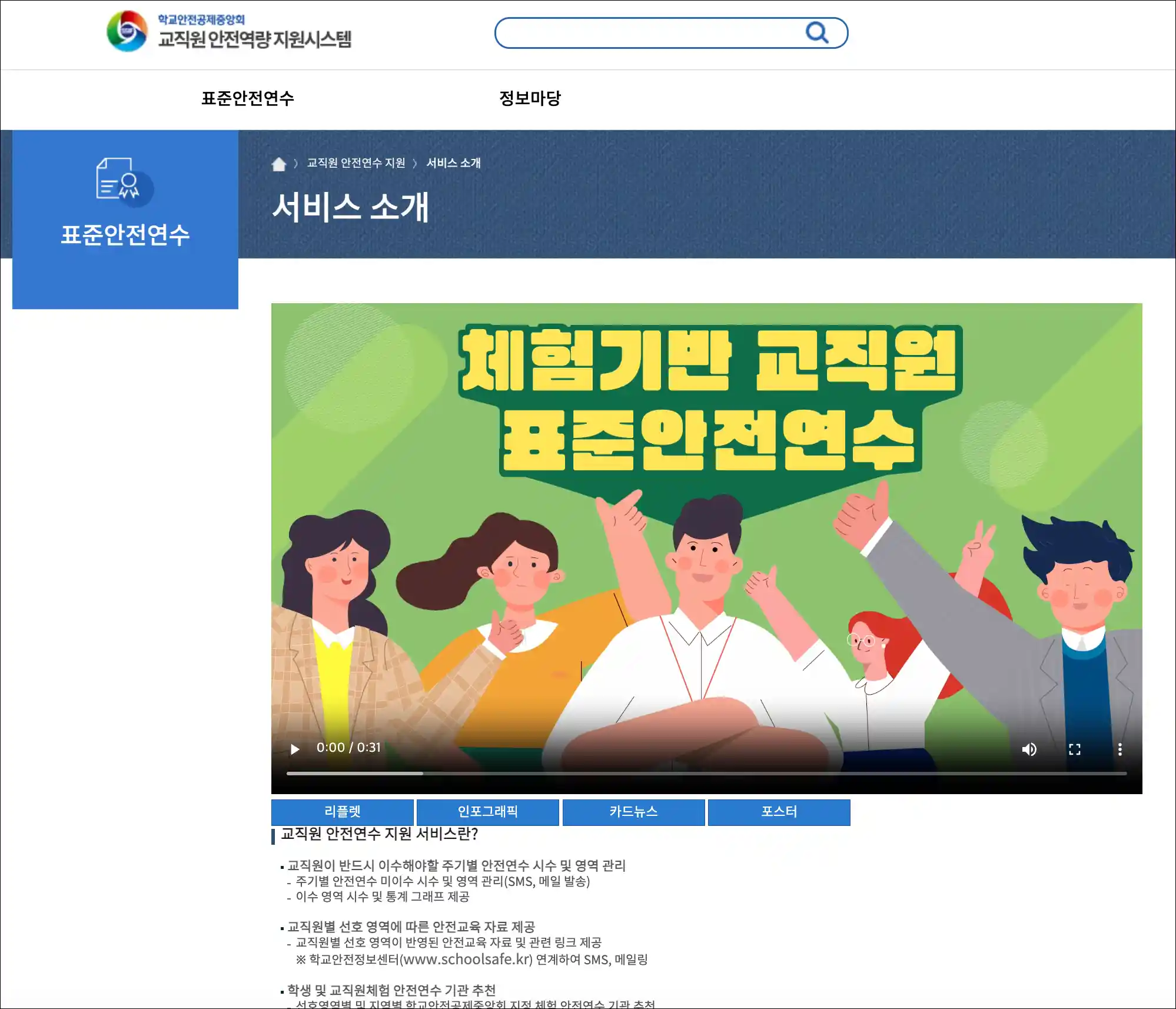 교직원 안전연수 지원 서비스는 교직원들이 안전교육을 주기적으로 이수할 수 있도록 도와주는 서비스입니다.