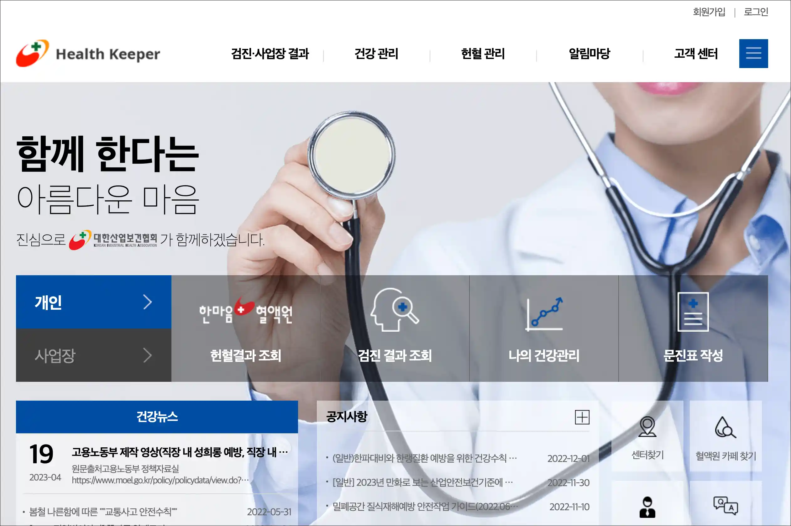 대한산업보건협회는 건강검진 이후 검진결과를 모바일 및 인터넷 상에서 확인하고 관리할 수 있도록 헬스키퍼(Health Keeper) 사이트를 운영하고 있습니다. 이를 통해 대한산업보건협회는 참가자들에게 편리한 서비스를 제공하여 건강 상태를 간편하게 파악하고 관리할 수 있도록 하고 있습니다.