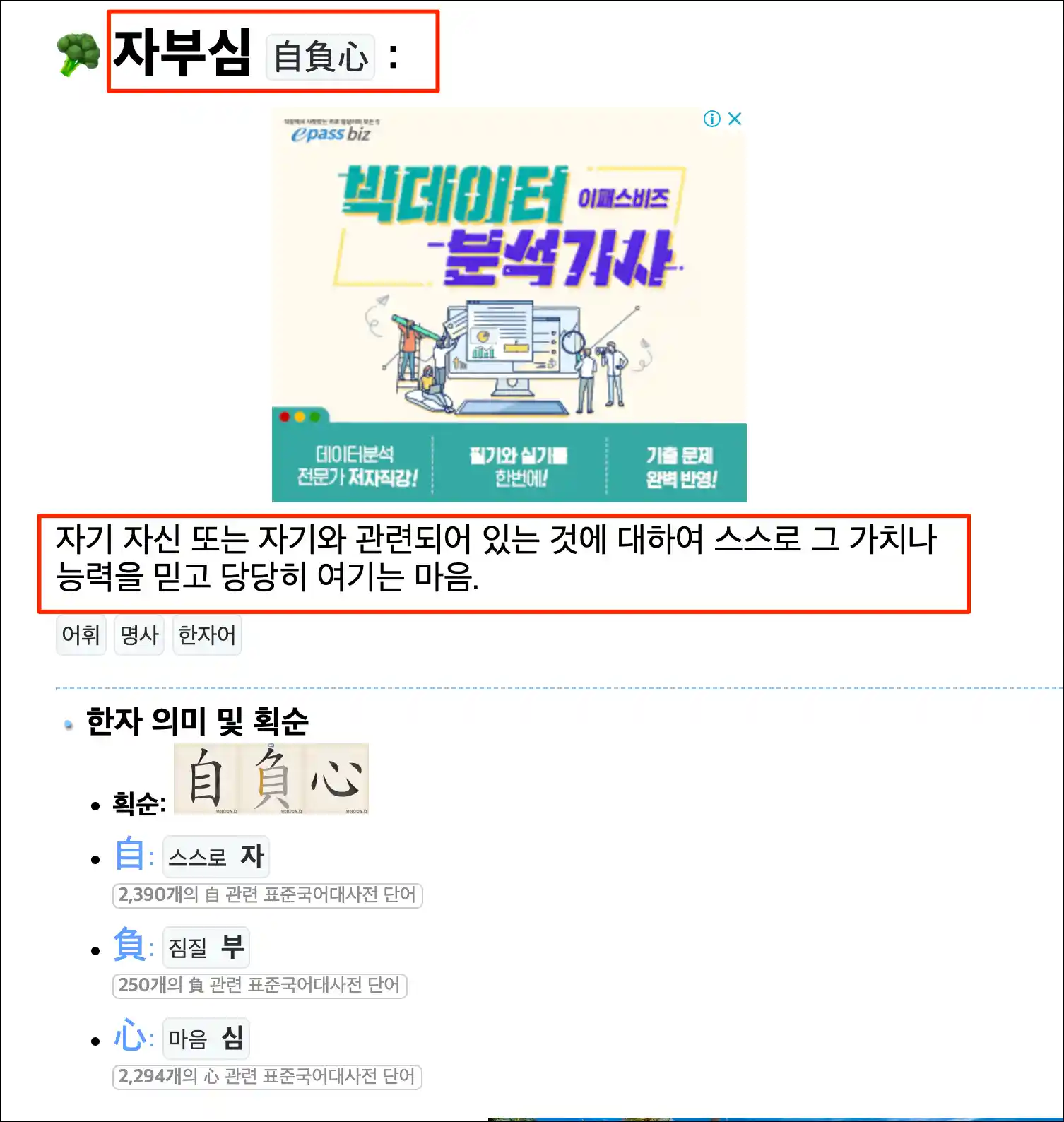 궁금궁금 '자신의 가치나 능력을 믿고 당당히 여기는 마음' 을 뜻하는 낱말은? 곰돌이푸아빠 2023. 8. 12. 08:52 https://wordrow.kr/%EC%9E%90%EC%84%B8%ED%95%9C-%EC%9D%98%EB%AF%B8/%EC%9E%90%EB%B6%80%EC%8B%AC/1/ 자부심 뜻: 자기 자신 또는 자기와 관련되어 있는 것에 대하여 스스로 그 가치나 능력을 믿고 당 자부심: 자기 자신 또는 자기와 관련되어 있는 것에 대하여 스스로 그 가치나 능력을 믿고 당당히 여기는 마음. (어휘 명사 한자어 ) wordrow.kr '자신의 가치나 능력을 믿고 당당히 여기는 마음' 을 뜻하는 낱말은 '자부심' 입니다. 공유하기 게시글 관리 푸른하늘아래 짙은구름 저작자표시 (새창열림) The greatest glory in living lies not in never falling, but in rising every time we fall. – Nelson Mandela '궁금궁금' Related Articles 농협은행과 단위농협 예금자보호 별도인가요? 서울시 가로구역별 최고높이 제한지역은? 국민건강보험공단 사회보험 통합징수 포털 흐린사진 선명하게 해주는 프로그램은?