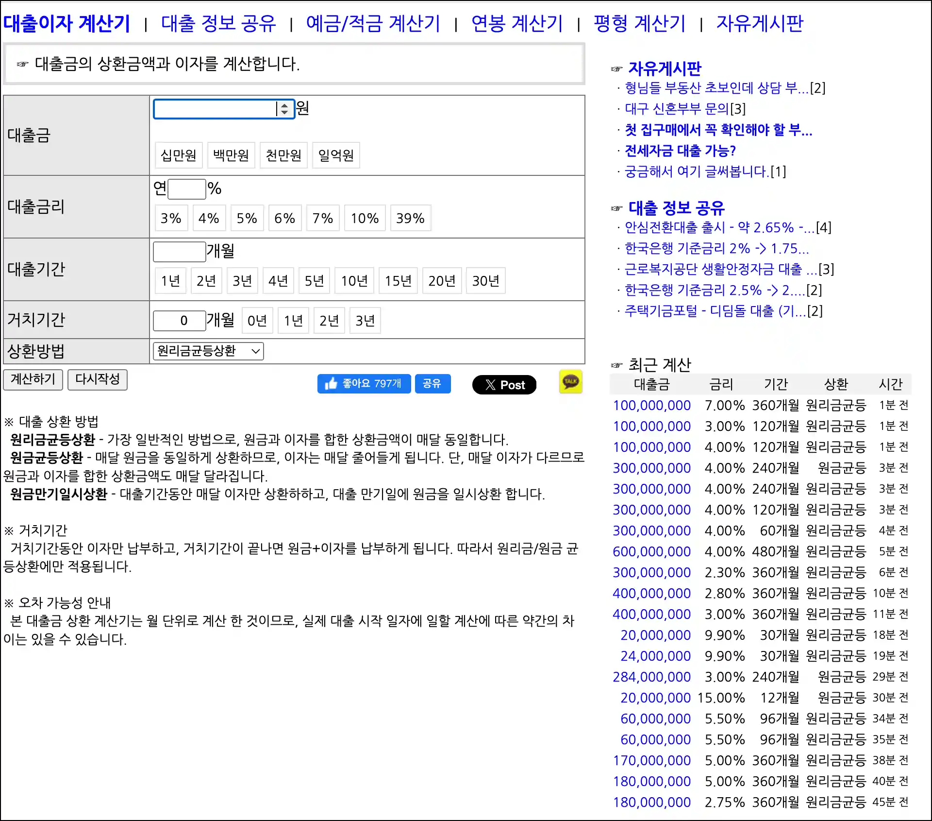 궁금궁금 2억 대출 20년 상환 매달 원금 계산 하는 방법 곰돌이푸아빠 2024. 2. 11. 19:38 https://best79.com/loan/ 대출이자계산기 | 원리금균등상환 | 원금균등상환 ※ 대출 상환 방법 원리금균등상환 - 가장 일반적인 방법으로, 원금과 이자를 합한 상환금액이 매달 동일합니다. 원금균등상환 - 매달 원금을 동일하게 상환하므로, 이자는 매달 줄어들게 best79.com 공유하기 게시글 관리 푸른하늘아래 짙은구름 저작자표시 (새창열림) The greatest glory in living lies not in never falling, but in rising every time we fall. – Nelson Mandela '궁금궁금' Related Articles 화학물질의 분류, 표시에 관한 국제기준을 전면 시행한 날짜 감가상각 자산의 폐업시 잔존재화 계산방법 한국표준과학연구원 표준시간 프로그램 무청 시래기 껍질 벗겨야 하나요?