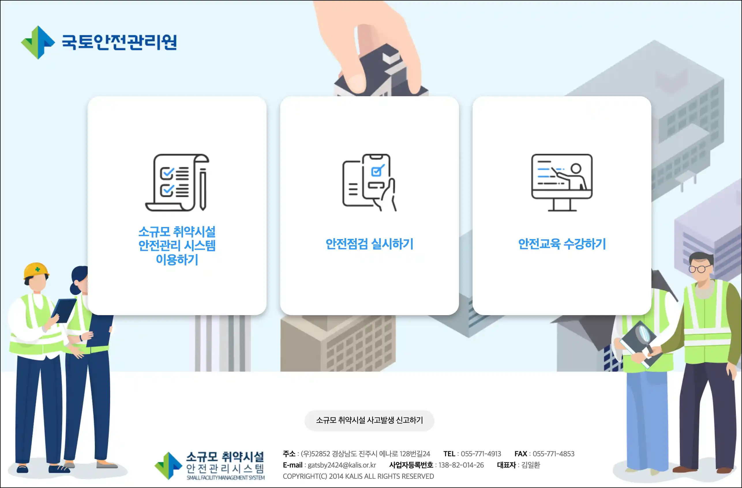 이 시스템은 소규모 취약시설의 점검 대상 관리, 점검 보고서 작성, 점검 결과에 따른 조치 이행 관리, 대상 현황 및 데이터 통계 분석 등 안전 점검 업무의 전산화를 목적으로 합니다.