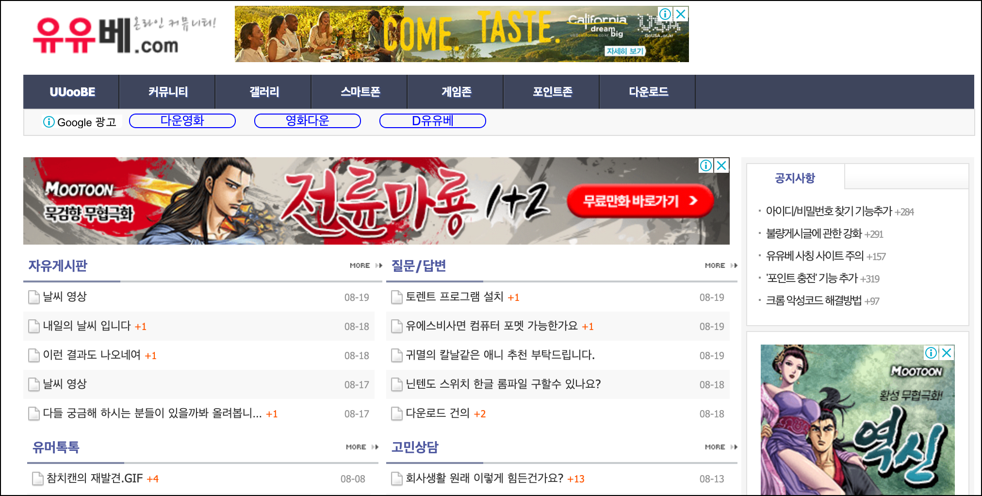 요즘 들어 유유베 도메인 uuoobe.com & uuoobe.net 과 유사한 주소로 유유베를