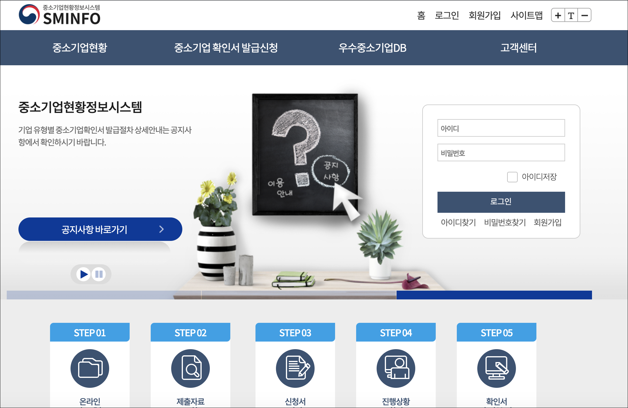 http://sminfo.mss.go.kr/cm/cs/CCS001R0.do
