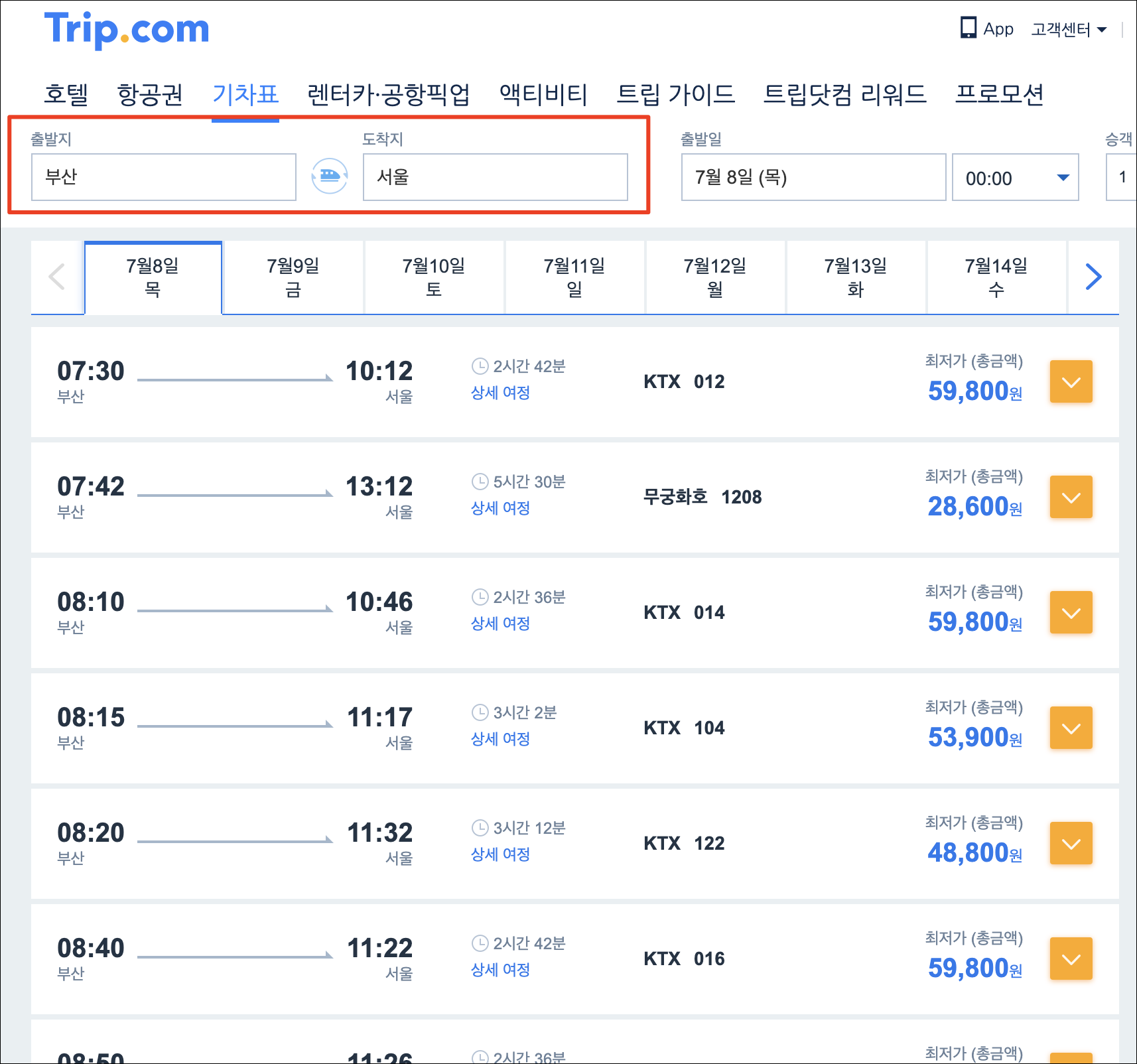 정보 부산에서 서울 ktx 시간표는? 곰돌이푸아빠 2021. 7. 8. 06:46 부산발 서울행 기차표 온라인 예약 & 배송 | 트립닷컴 트립닷컴에서 부산발 서울행 기차, 고속 열차 예약, 실시간 기차 운행시간, 운임, 기차 요금표, 잔여 좌석 정보, 기차표 배송 서비스를 검색하세요. kr.trip.com 부산에서 서울가는 ktx시간표를 확인해보세요. 공유하기 게시글 관리 푸른하늘아래 짙은구름 저작자표시 (새창열림) The greatest glory in living lies not in never falling, but in rising every time we fall. – Nelson Mandela '정보' Related Articles '왕관을 쓰려는자, 그무게를 견뎌라' 영어표현은? 인천 블라디보스토크 비행시간은? 노인이 고관절 수술후 회복기간은 어느 정도 될까요? 용산역 천안행 급행전철 시간표는?