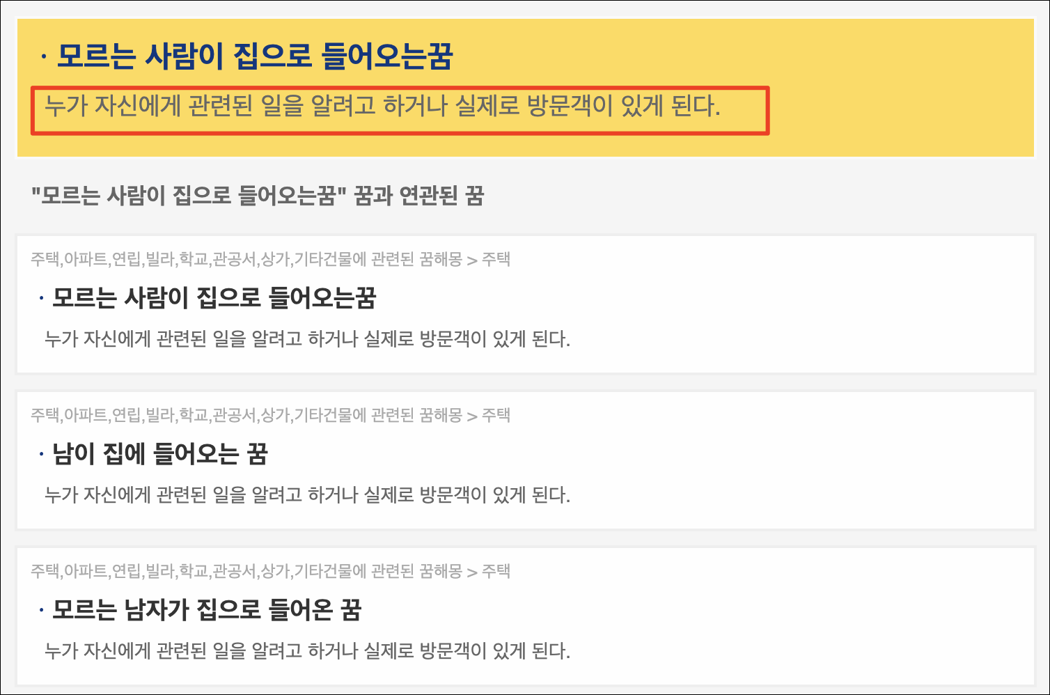 모르는 사람이 집에 들어와 있는 꿈은 '누가 자신에게 관련된 일을 알려고 하거나 실제로 방문객이 있게 될' 꿈 이라고 합니다.