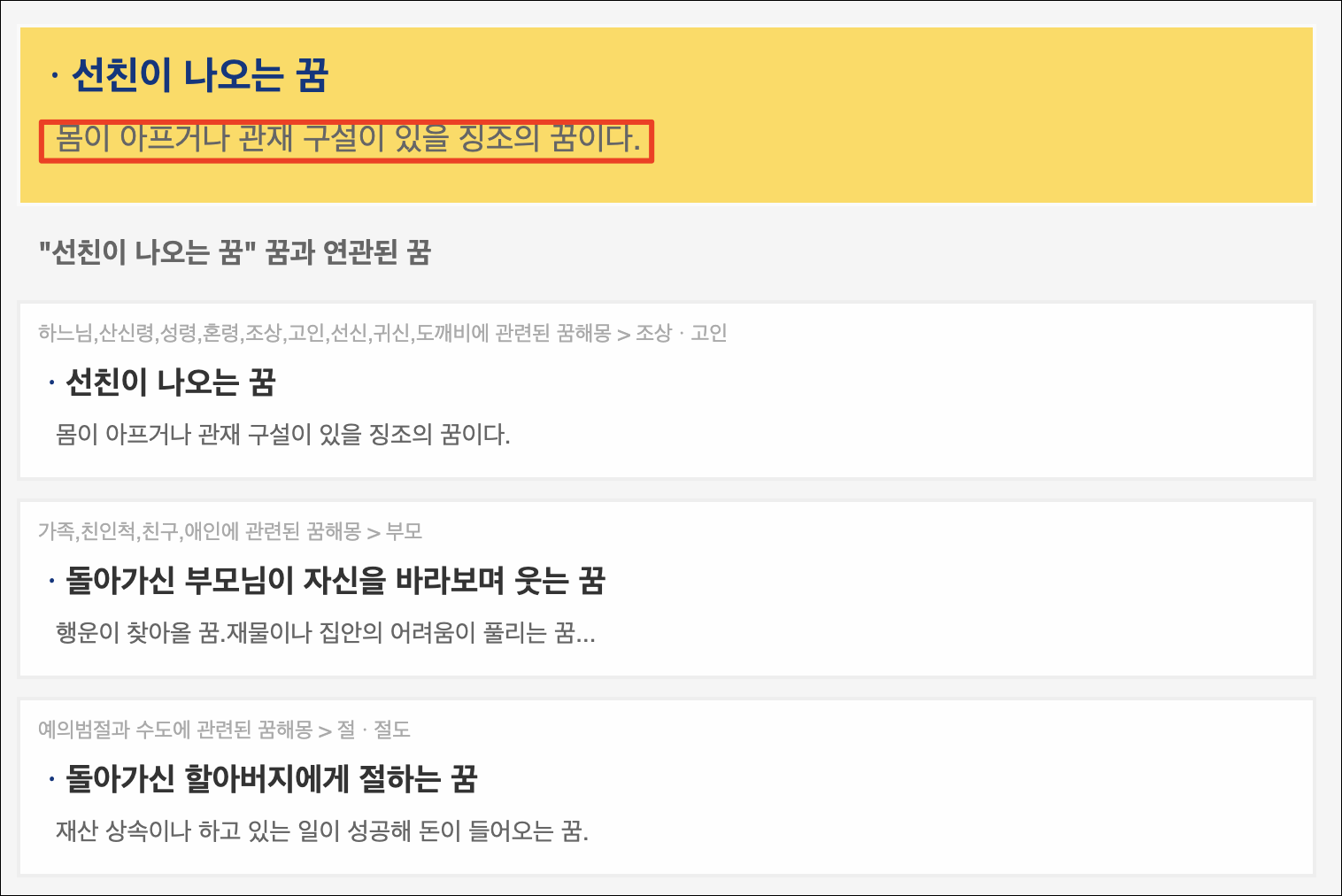돌아가신 부모님이 나오는 꿈은 그닥 좋은 꿈이 아니었군요.