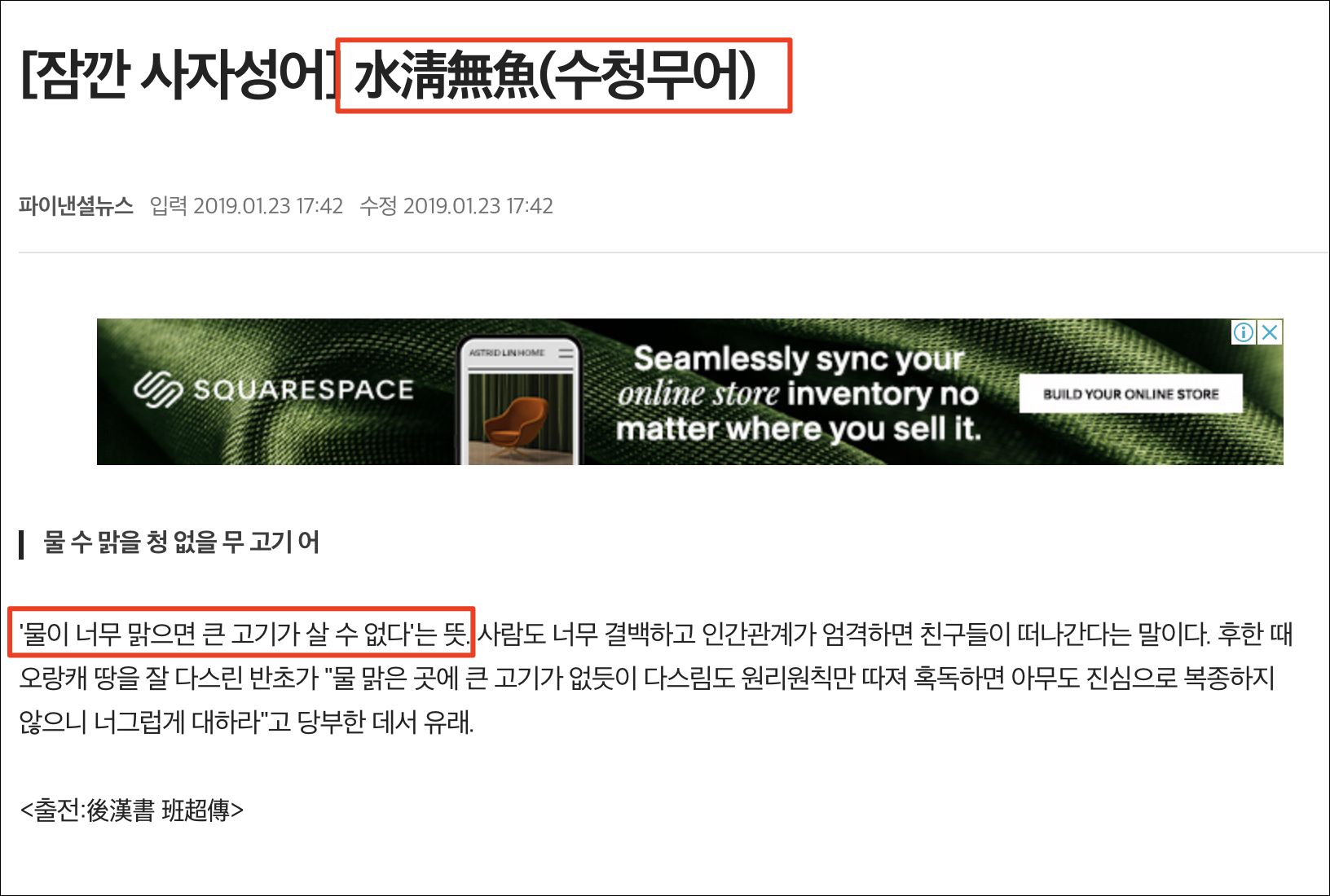 궁금궁금 '물이 너무 맑으면 큰 고기가 없다'는 뜻의 사자성어는? 곰돌이푸아빠 2021. 11. 6. 09:16 [잠깐 사자성어] 水淸無魚(수청무어) '물이 너무 맑으면 큰 고기가 살 수 없다'는 뜻. 사람도 너무 결백하고 인간관계가 엄격하면 친구들이 떠나간다는 말이다. 후한 때 오랑캐 땅을 잘 다스린 반초가 "물 맑은 곳에 큰 고기가 없듯이 www.fnnews.com 공유하기 게시글 관리 푸른하늘아래 짙은구름 저작자표시 (새창열림) The greatest glory in living lies not in never falling, but in rising every time we fall. – Nelson Mandela '궁금궁금' Related Articles 단거 많이 먹으면 당뇨 걸리나? 부산 금정경찰서 민원실 전화번호는? lg전자 멤버십 포인트 사용처는? 66사이즈 치수 가슴둘레 허리둘레는?